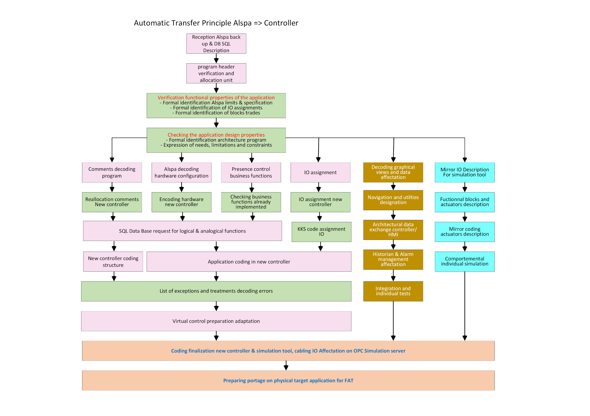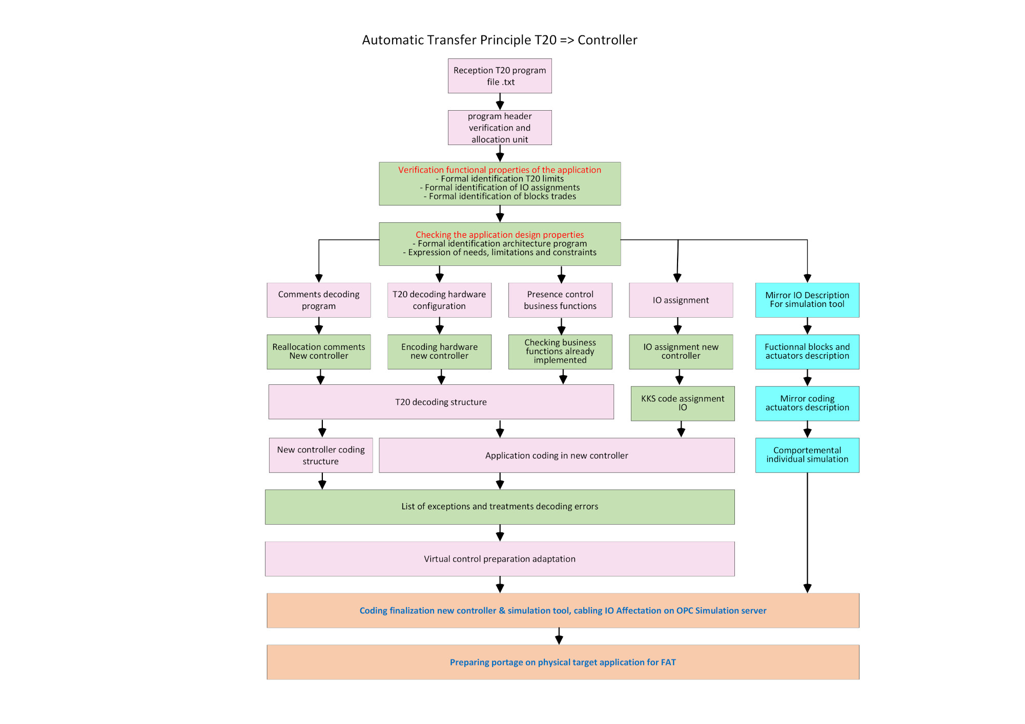 The diagrams below detail the process of the automated transfer from T20 controler and ALSPA controler to other PLCs